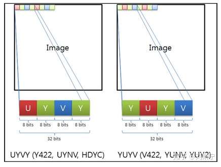 对于packed的YUV格式,每个像素点的Y,U,V是连续交叉存储的。